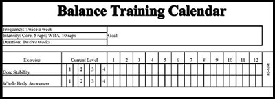 Перед началом построения такого компонента комплексной физподготовки собаки как баланс, взгляните на календарь тренировок. В нём определена интенсивность, частота и продолжительность тех или иных упражнений, а также прилагается расписание, в котором вы можете помечать, какие упражнения уже выполнены. Начните с тестирования собаки на силу мышц-стабилизаторов и координацию. Когда определите уровень упражнений, отметьте его в календаре. Когда проведёте тесты на все остальные компоненты физического состояния — силу и выносливость (описаны в следующих главах), обратитесь к главе 6 «Программы комплексной физподготовки для различных видов спорта». Там подробно описано, какие упражнения стоит включить в программу физподготовки, и какой должна быть цель для определённых видов спорта.